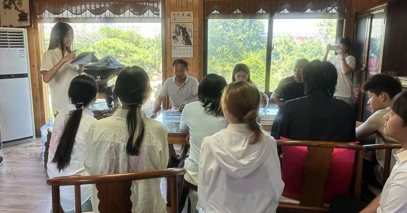 次日,石榴果小队马不停蹄奔赴山东枣庄万景园石榴盆景合作社,这里也是枣庄峄城石榴盆景协会的基地。小队成员再次发挥专业优势,为张忠涛会长以及多名新一代石榴盆景非遗传承人带来了别开生面的石榴财税课堂。深入浅出的讲解,为石榴盆景产业的规范发展提供了新思路。