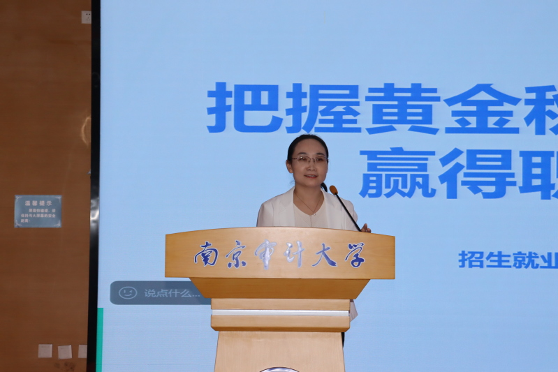首先,招生就业处副处长李玉淑从就业形势、关键节点、准备建议三方面,为同学们带来权威解读。李玉淑副处长表示,在就业形势上,毕业生人数不断上升,竞争激烈,“躺平”不可取,需树立“先就业再择业”的观念。她还提出了五大就业方向节点:事务所7-10月招聘;银行多于10月截止网申;国考10月公告11月笔试、省考分时段;国企9-10月网申;考研12月笔试,希望同学们对各种就业方向的关键时间节点做到心中有数。同时,她建议同学们就业要打“三大战役”:盯多平台打信息战,做针对性简历、练面试打准备战,正视失败、广投简历打心态战。