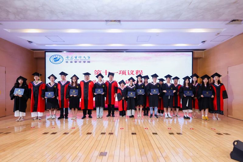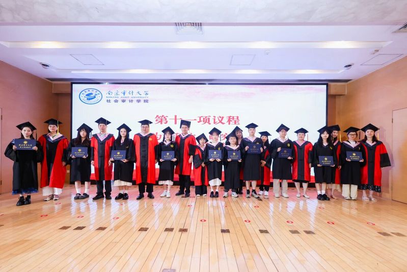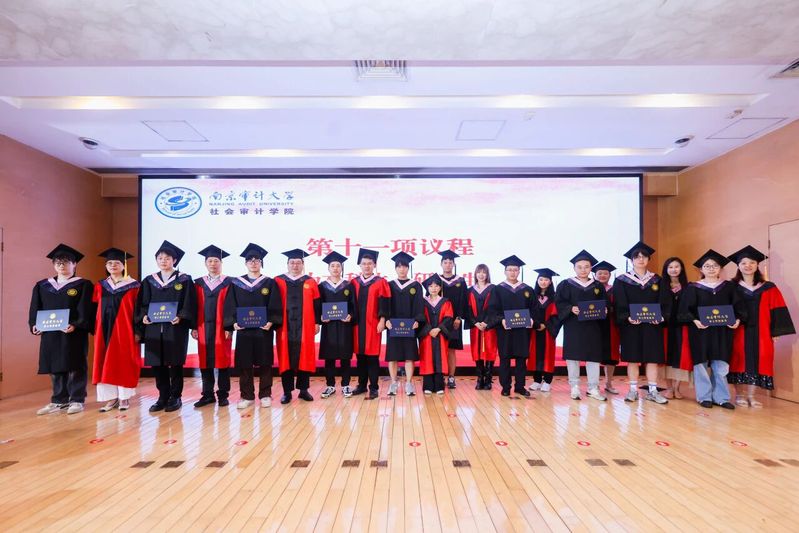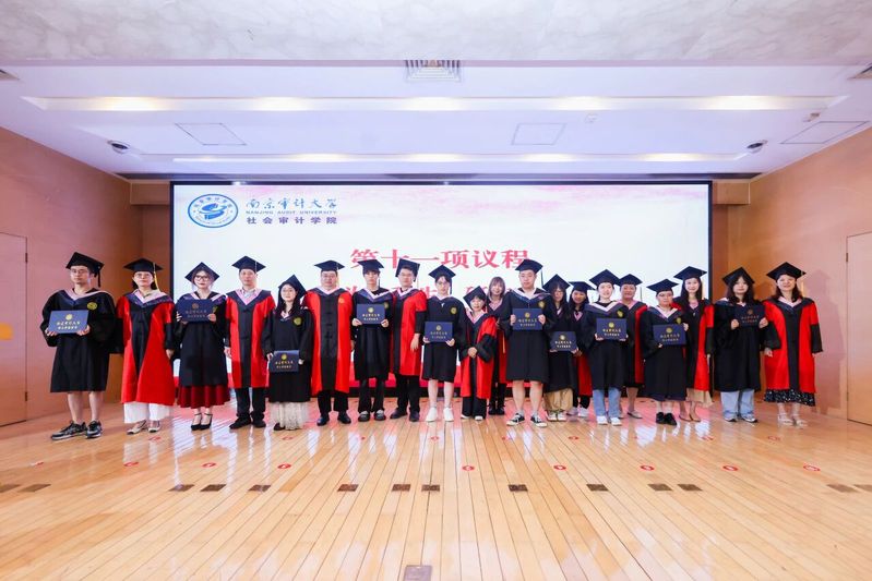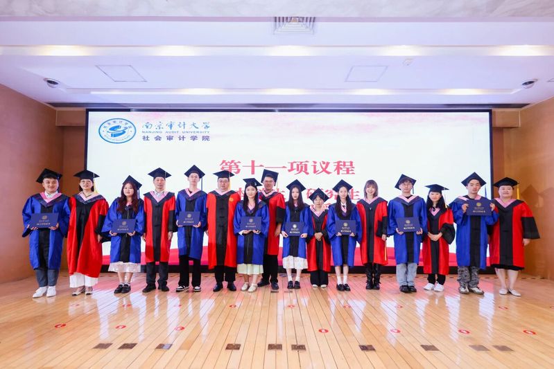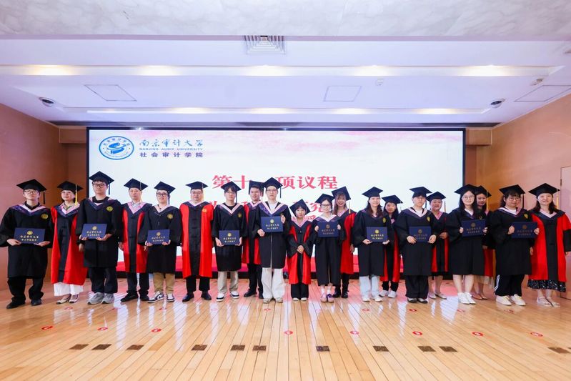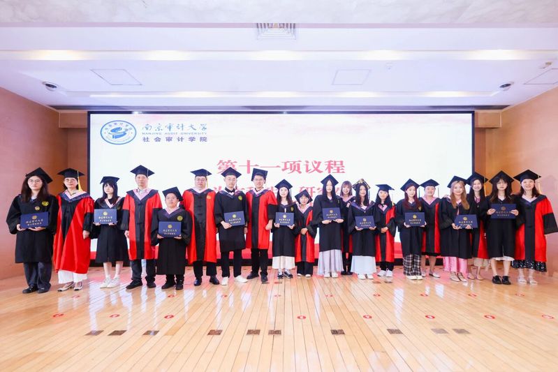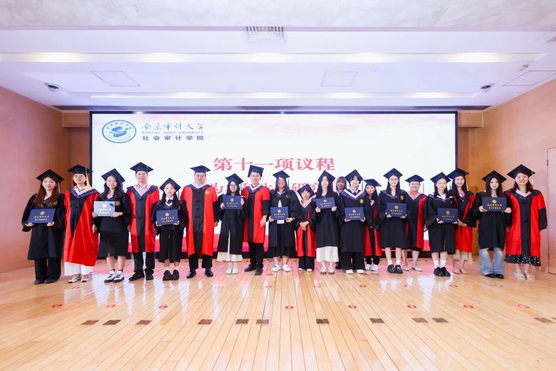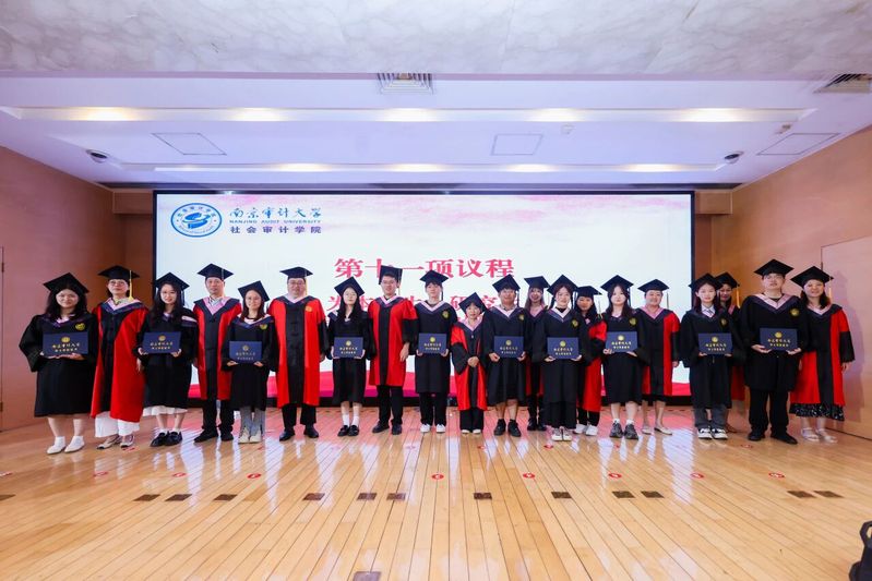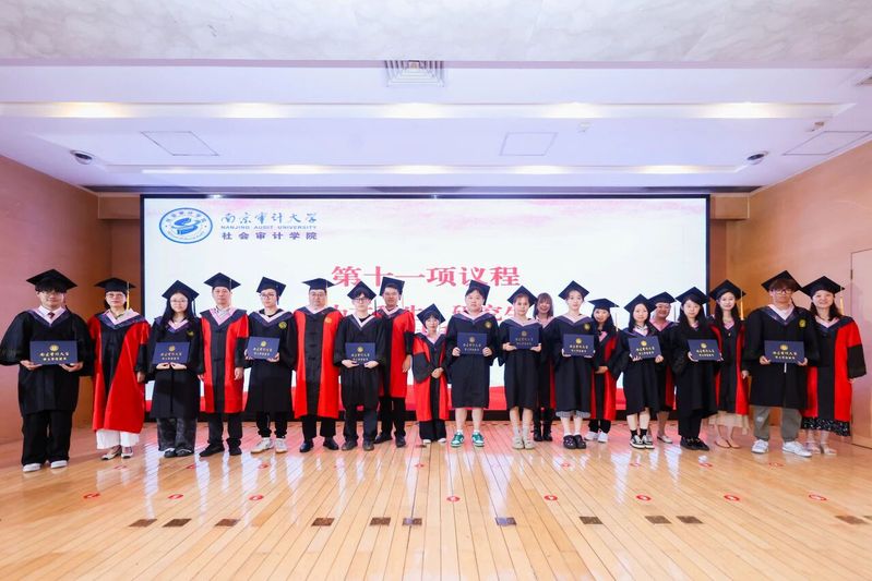 6月19日上午,社会审计学院2025年毕业典礼暨学位授予仪式在敏达学术报告厅隆重举行。南京审计大学党委常委、副校长陈冬华教授应邀出席典礼,苏亚金诚会计师事务所技术部主任薛婉如,ACCA校外实践导师、南京市交通建设投资控股集团有限责任公司集团财务部副主管李晗,IMA管理会计师协会华东区与华南区合作发展经理朱雪宏,泽园书院党委书记王智源,润园学院党委副书记单德伟,澄园书院综合办公室主任吴隽,内部审计学院院长、原社会审计学院院长许汉友,档案馆副馆长、原社会审计学院党总支副书记(主持)吴青川,中审学院院长施平,社会审计学院中审学院执行院长叶邦银应邀参加典礼。社会审计学院院长王素梅,党总支副书记钱琨,国际审计系主任李岩岩,CPA审计系主任肖明 芳,国际会计系主任王辉,学院教师代表、全体辅导员以及学院2025届毕业生和家长代表共200余人参加典礼。典礼由社会审计学院党总支书记况广收主持。
