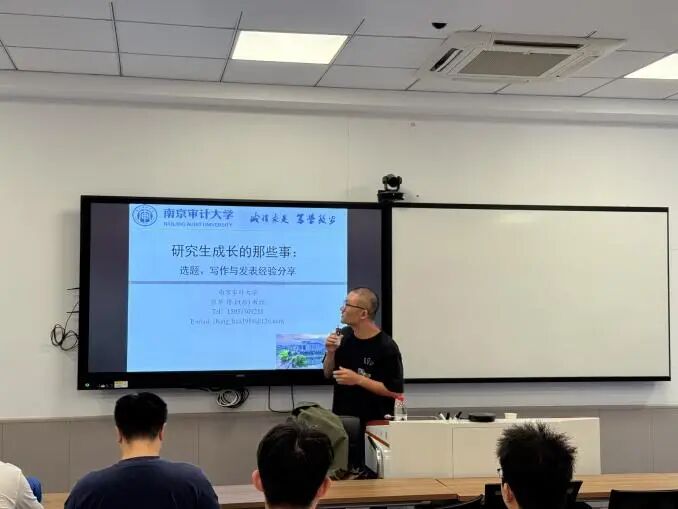 10月15日下午,社会审计学院审思青年博士大讲堂(2025年第1期)在澄园A103会议室召开,由张华教授开展主题为“研究生成长的那些事:选题、写作与发表的经验分享”,我院全体研究生同学参加。