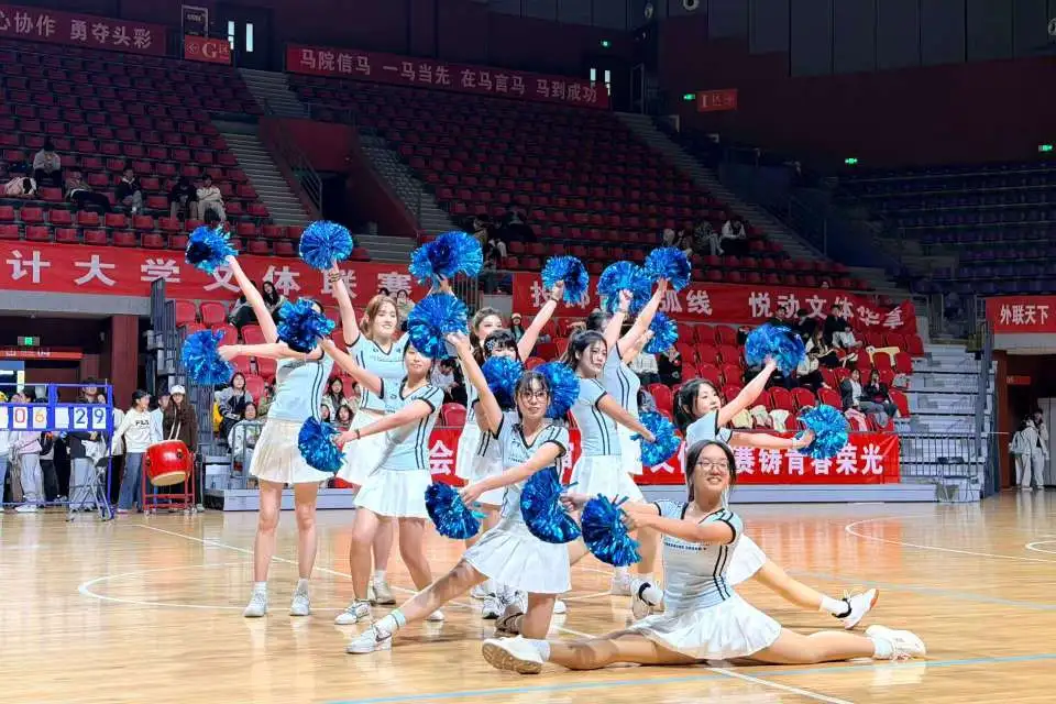 中场休息时间,赛场氛围被拉拉队的表演推向高潮。我院拉拉队员们手持湛蓝的花球,用热情的舞蹈为球员们加油鼓劲,每一次甩动花球都似青春的焰火绽放,每一个定格造型都饱含着对球队的满满激励。动感的节拍里,她们用活力满满的动作打破赛场的紧张,用灿烂的笑容传递着社审学子的朝气。一个个利落的旋身、一次次有力的踢腿,将拉拉队活力与热情倾注在赛场之上。