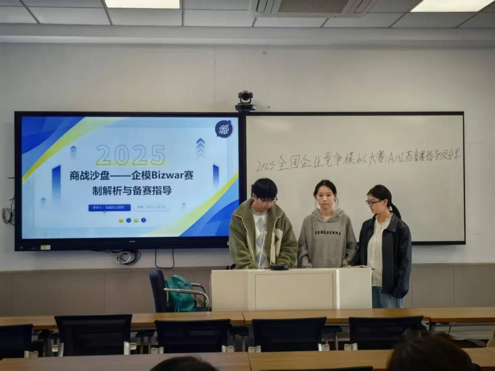 10月22日,社会审计学院在澄园书院A103开展2025年全国企业竞争模拟大赛备赛指导及经验交流会,活动特邀商学院副教授彭红霞老师主讲,2024年国赛二等奖“出岫无心”团队同学进行分享,社会审计学院和中审学院的同学们参与了本次活动。 彭红霞首先围绕赛事分类与选择进行介绍。她结合教育部及学校竞赛目录,对A+、A、B、C、D等几类竞赛进行介绍,建议大家优先参与A、B类高含金量竞赛,同时对应准备校级选拔赛。她以“成果复盘+赛事解析”为核心,带来了极具价值的竞赛经验分享。作为长期深耕学生竞赛指导的专家,她不仅用详实数据梳理了“仁泽杯”全国企业竞争模拟大赛的历年战绩——从早期组队探索时的零星获奖,到如今每年组织数十支队伍参赛、稳定斩获全国一、二等奖的突破,更通过典型案例还原了备赛中的关键决策与经验教训。同时,针对“学创杯”“建行杯”等特色赛事,彭老师也精准提炼了参赛要点,让在场同学对不同赛事的定位与切入点有了清晰认知。 随后,由2022级工商(管理审计)班刘文友、罗晓宇、江思奇组成的2024年国赛二等奖团队,分享了企业竞争模拟大赛运营赛道经验。他们介绍比赛里20支队伍各代表一家企业,接到订单进行生产,在不囤货的情况下进行7-8轮比拼;核心就是做好营销、生产、财务管理,既要尽可能多营利,又不能囤太多货或接了订单不能交货。需要对企业的运营策略进行研究,开始时摸清原料价、算好评分重点,多争取资金并找到最合适的分红比例;中间阶段要控制接单量、盯着对手动态;后期面对“奇数轮加赛、偶数轮不加赛”的选择,可灵活用冒险、保守或折中的方式降低风险,最后还鼓励同学们不怕困难,大胆尝试。 此次彭红霞老师与团队学长学姐的分享,既是一场实用的竞赛攻略“加油站”,更是一次点燃奋斗热情的成长进阶“冲锋号”。老师的专业解读搭建了系统的赛事认知框架,学长学姐们则补充了备赛时间管理、团队协作技巧等“实战干货”。对于有参赛意向的同学而言,这不仅是了解赛事的窗口,更是明确努力方向的契机——以拼搏姿态投身竞赛,在方案打磨与赛场比拼中锤炼专业能力,既能让青春在竞技中绽放光芒,更能为大学生涯与未来职业发展筑牢根基、添上浓墨重彩的一笔。