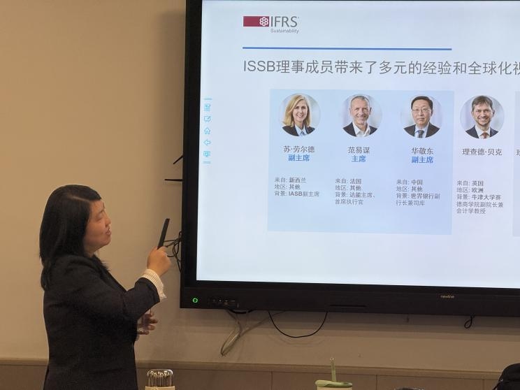 11月4日晚,国际财务报告准则基金会北京办公室能力建设专家程红粤女士受邀为我院师生开展题为“从COP26到全球‘通行证’:ISSB准则的诞生、演进与全球影响”的专题讲座。讲座由社会审计学院院长王素梅主持。