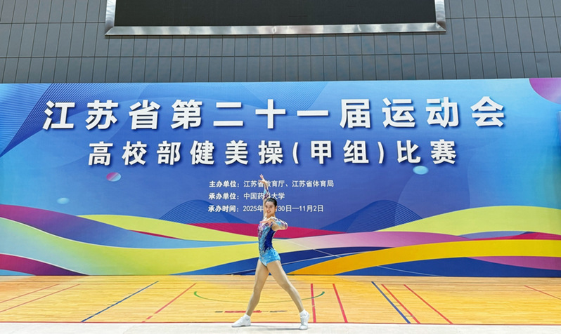 11月2日,在江苏省第二十一届运动会高校部健美操比赛中,我院2024级国审3班宁乃曼获甲B组女子单人操项目冠军,实现我校在该项赛事中的历史性突破。