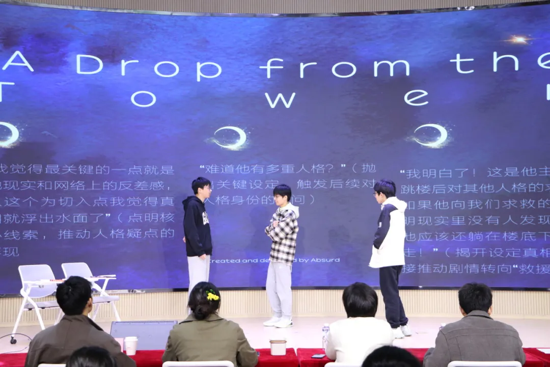 2025级国审4班的《坠楼记》生动地演绎诠释了深刻的道理:一场荒诞的自我调查,能够揭开被规训压抑的灵魂。当外在的标签与成就都无法唤醒他时,唯有童年未凉的琴声能够照亮归途——真正的救赎,从来不在他人的期待里,而在对初心的回望中。