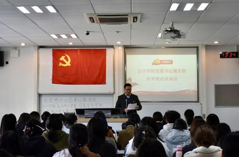 首先,会计学院党委书记魏东胜作开班动员讲话。他强调,全体参训学员要以此次培训为契机,切实端正学习态度,树立正确目标,自觉将个人理想追求融入党和人民事业发展大局。始终牢记初心使命,自觉践行党的宗旨,不断提升政治素养和业务能力,努力成长为让党放心、人民满意的新时代有为青年,以实际行动为实现中华民族伟大复兴的中国梦贡献青春力量。