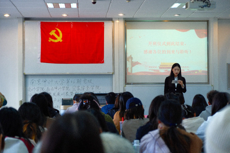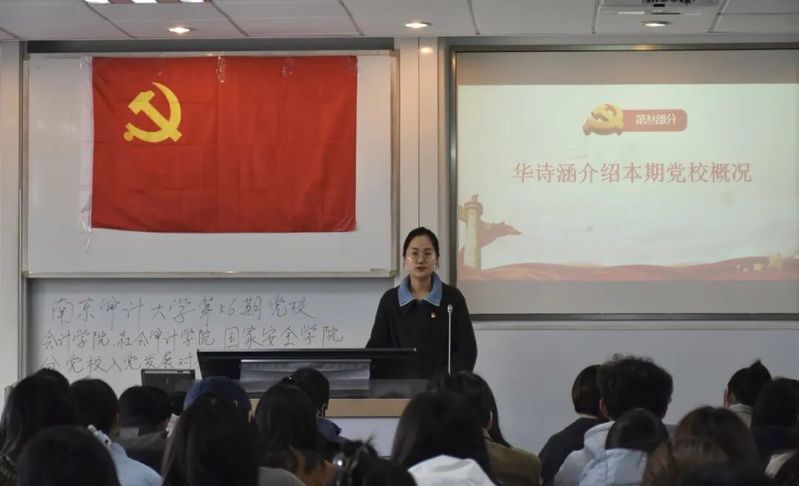 为强化入党发展对象和新发展党员的理论素养和党性修养,11月19日,南京审计大学第56期党校会计学院、社会审计学院、国家安全学院分党校入党发展对象培训班开班仪式在敏行楼207教室庄严举行。会计学院党委书记魏东胜、会计学院党委副书记周樱樱、社会审计学院党委副书记钱琨、党委组织部党建办公室及党校办公室主任周媛、国家安全学院专职组织员芮欣雅、社会审计学院辅导员郑欣、会计学院辅导员华诗涵出席仪式,第56期分党校全体学员参加。