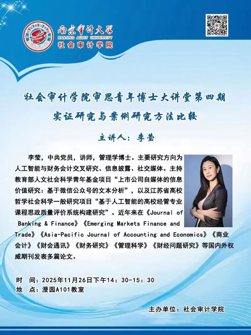 讲座预告|社会审计学院审思青年博士大讲堂第四期实证与案例研究方法比较