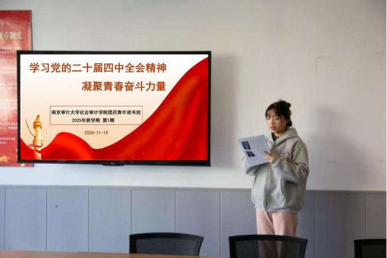 为深入学习贯彻党的二十届四中全会精神,凝聚团员青年奋进力量,南京审计大学社会审计学院(中审学院)团员青年读书班2025年秋学期第一期活动于11月19日顺利开展。学院研究生会、本科生主席团及部长团成员齐聚204团学活动室研读分享,共赴一场思想与青春的碰撞之约。