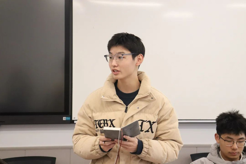 主持人谢学敏同学在会议开头清晰阐述了本期读书班“感悟两会新风 笃行青年担当”的主题,强调了青年学子立足“十五五”新起点、把握国家发展脉搏、将个人成长融入时代大局的重要意义。